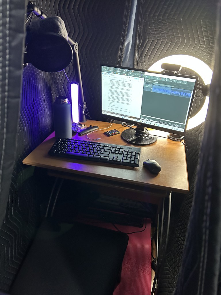 Eventually I just decided to dive in. I have a background in public speaking, a knack for character voices and accents, a love for acting and performance, a passion for great stories and characters, and a technical background in audio engineering. I narrated my first book over the Christmas break in 2024 and never looked back.